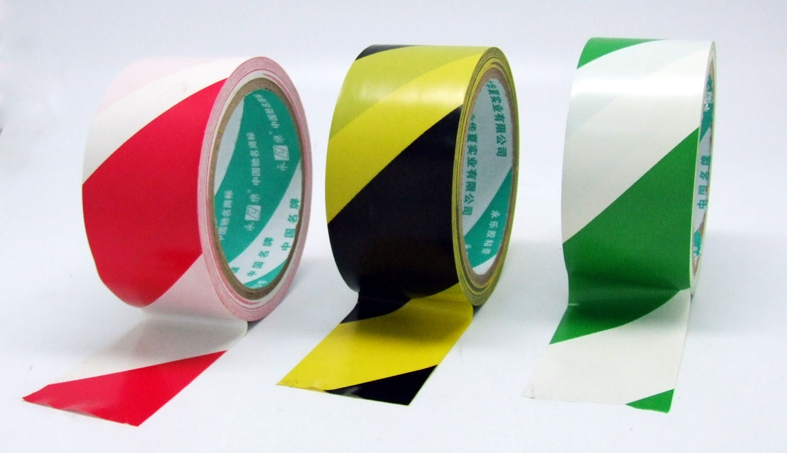 各色的警示膠帶(warning tape):黃黑警示,全紅警示,全黃警示,綠白警示等:粘貼于地上、墻上和機(jī)器上起禁止、警示、提醒和強(qiáng)調(diào)作用(PVC warning tape)